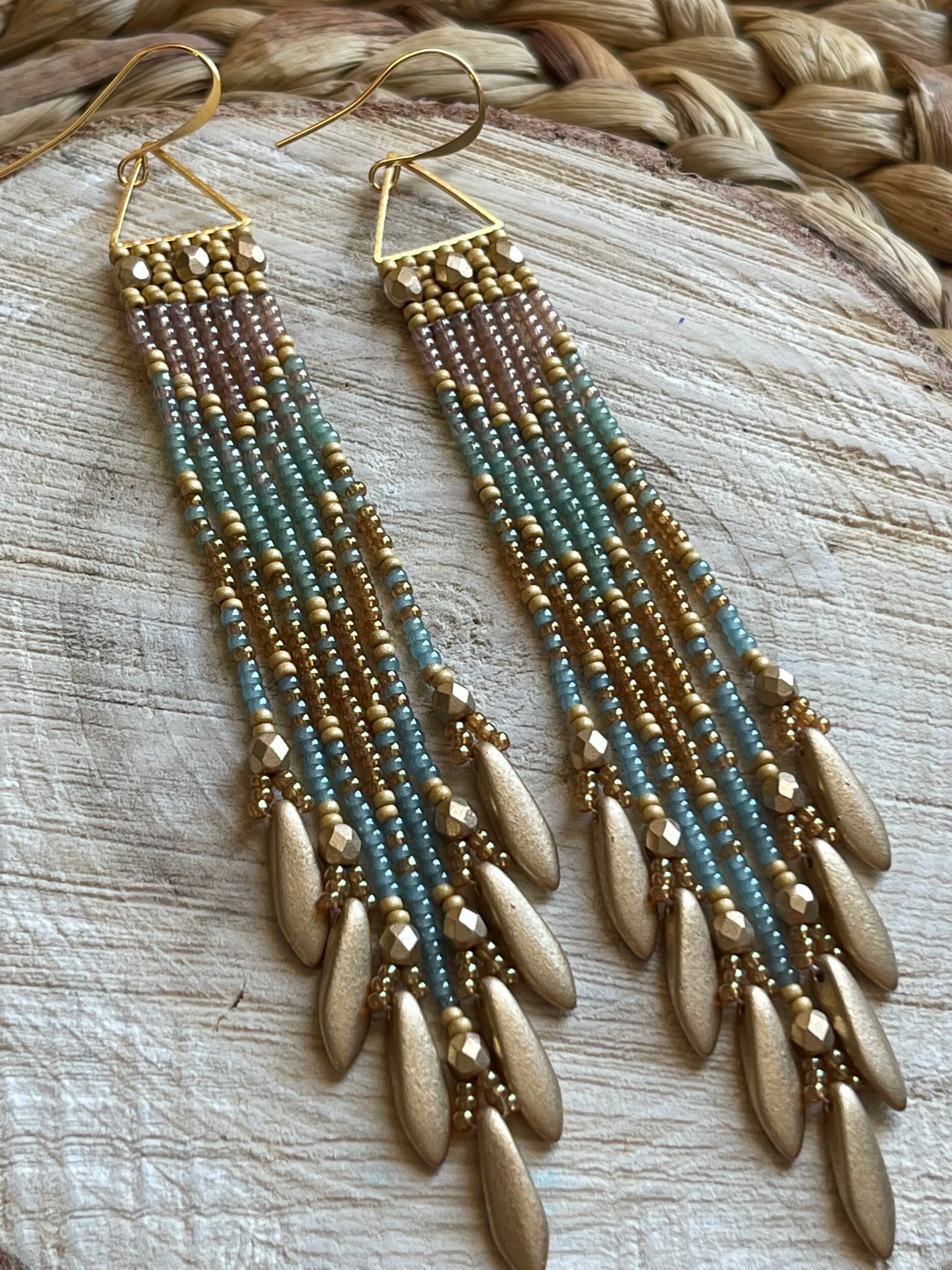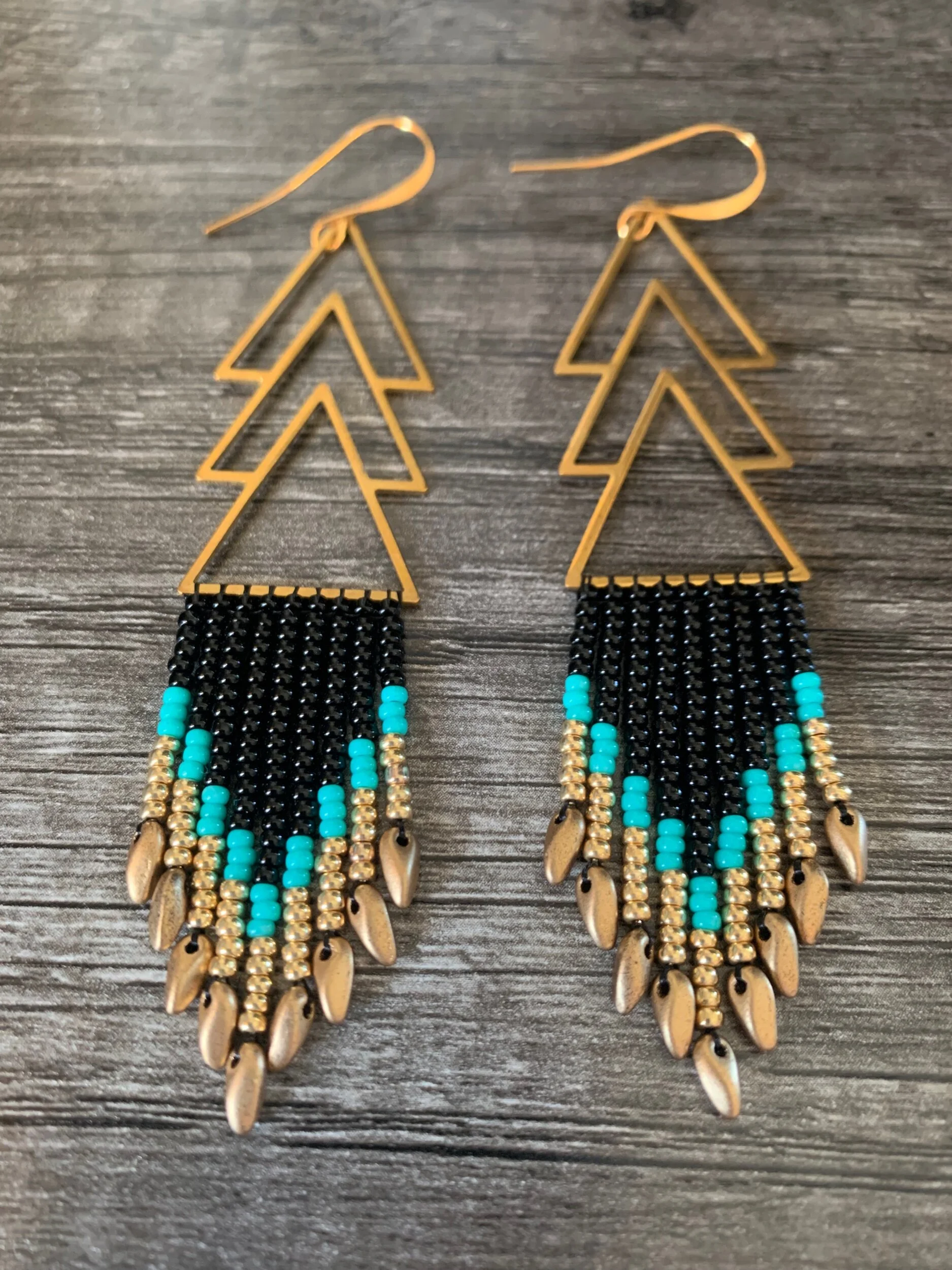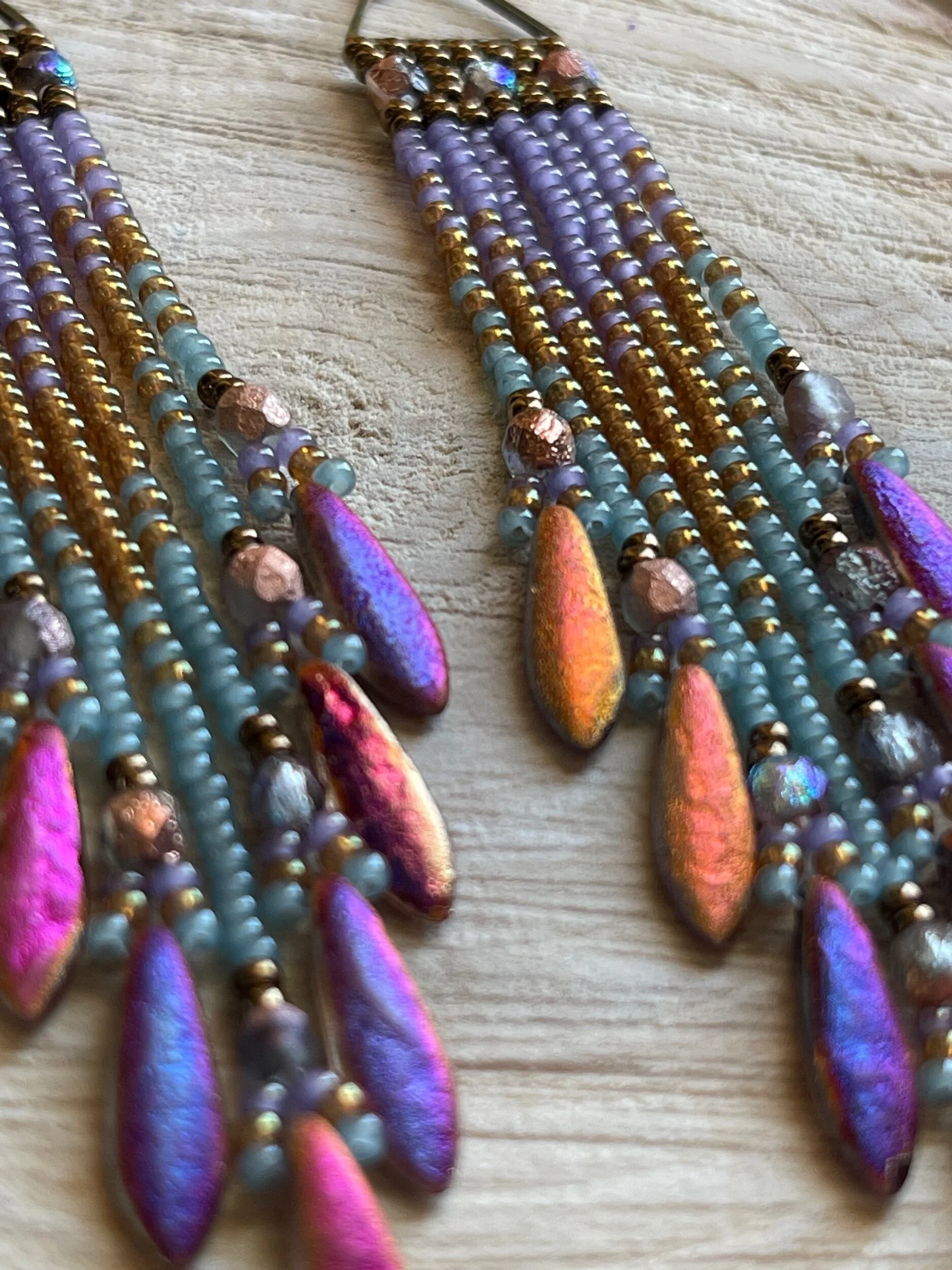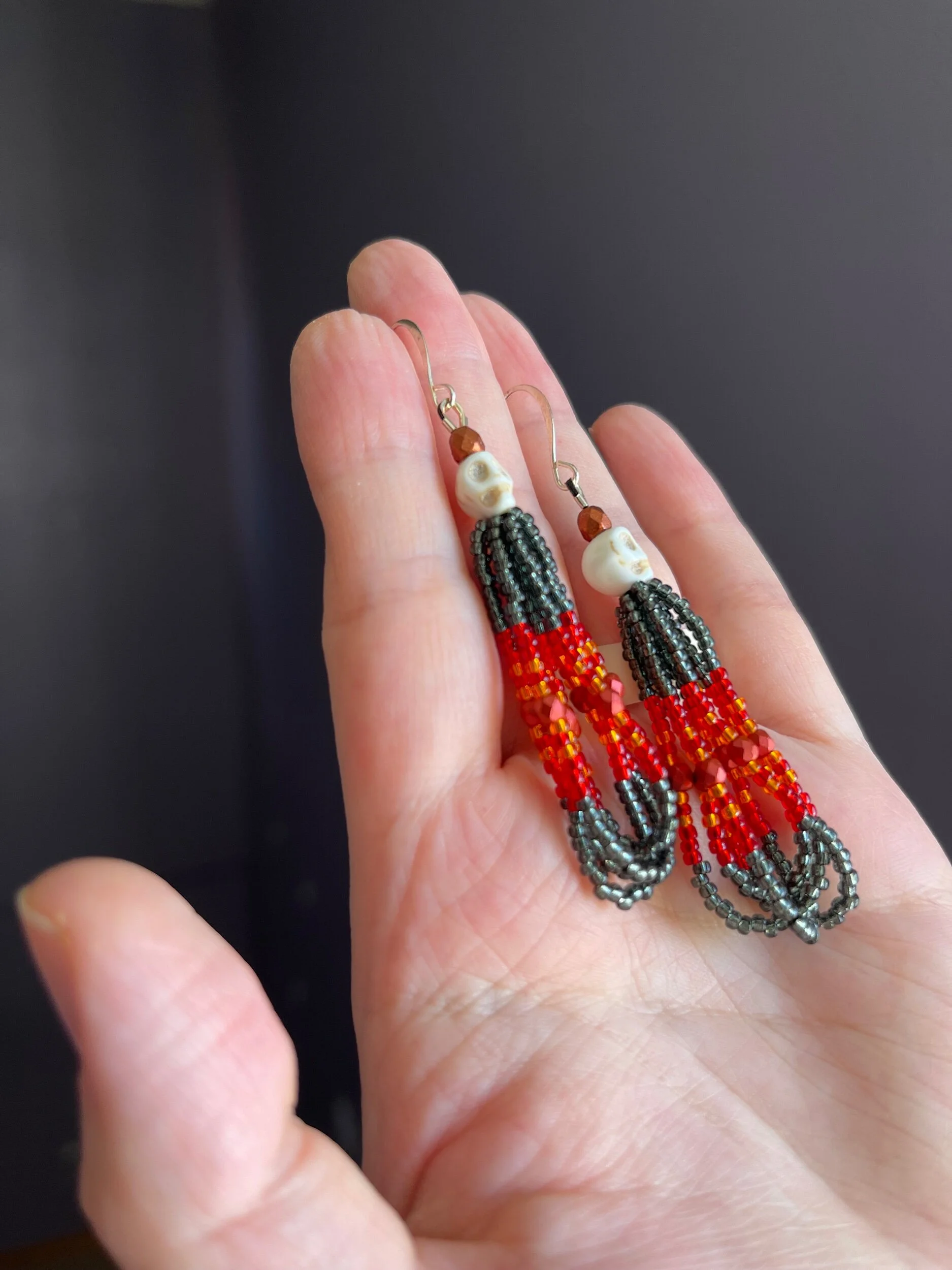 Metal findings, brass cutouts, charms, faceted beads, daggers, thorn beads, bugle beads, skull beads, delica beads and miyuki round beads fill my work area and they offer me so much room for creativity. Here you can browse some of my styles and inclusions of these components.