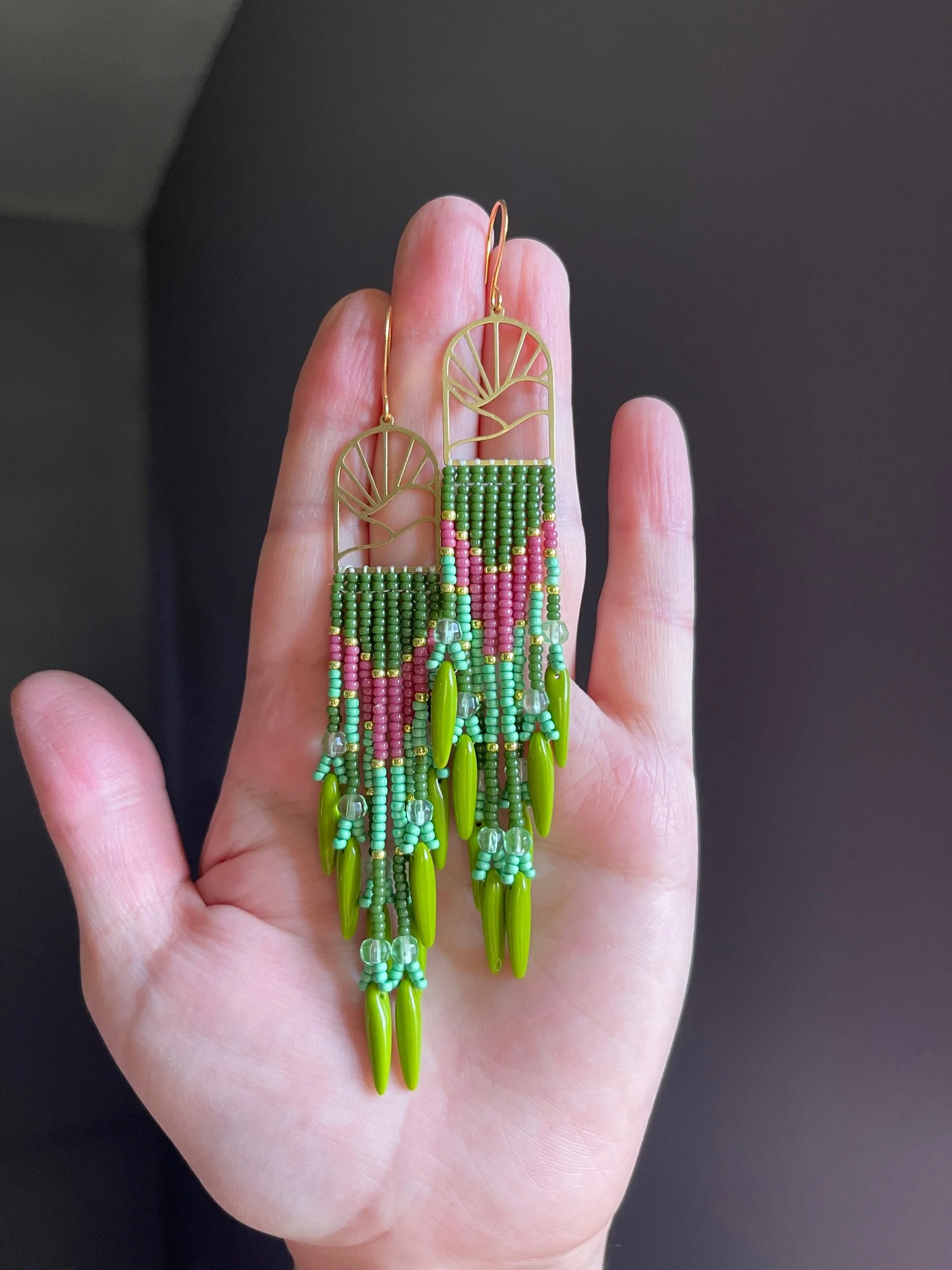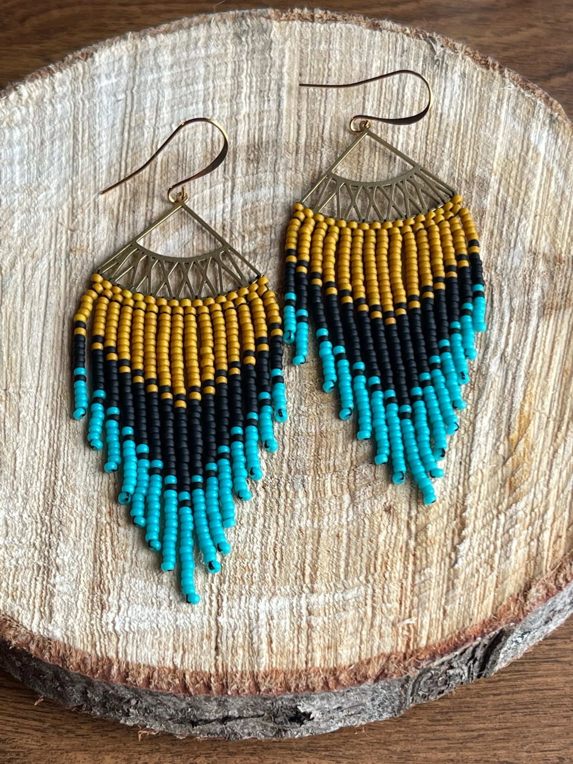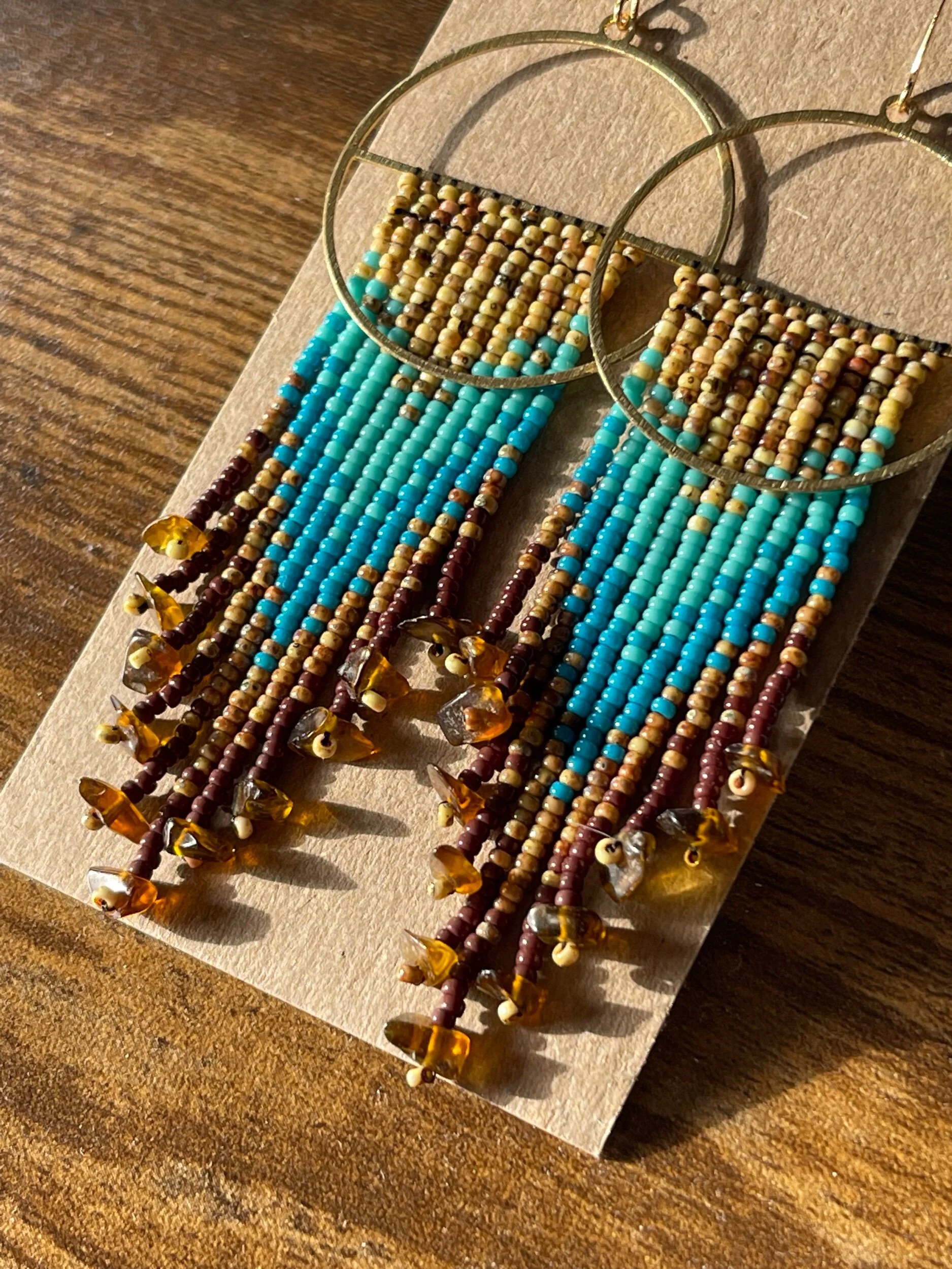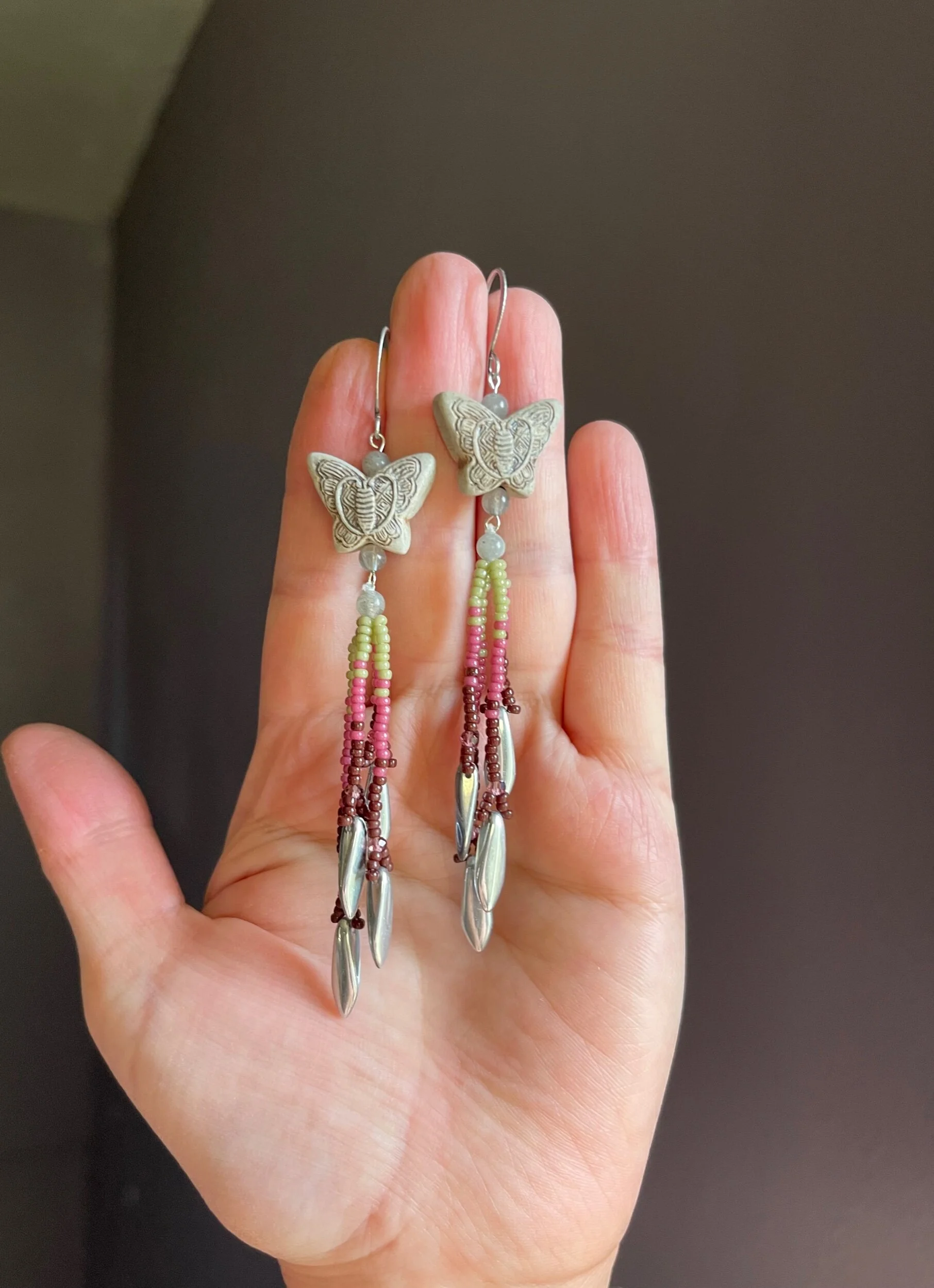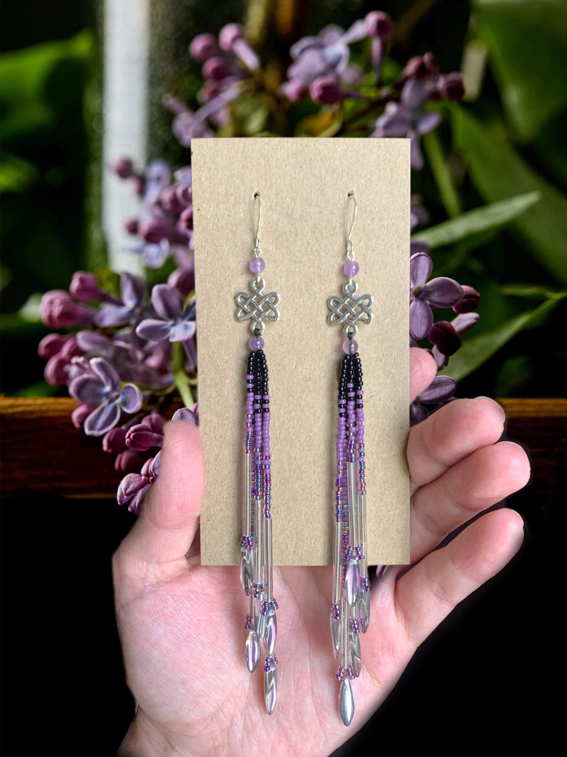 Metal findings, brass cutouts, charms, faceted beads, daggers, thorn beads, bugle beads, skull beads, delica beads and miyuki round beads fill my work area and they offer me so much room for creativity. Here you can browse some of my styles and inclusions of these components.
